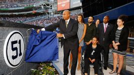 NEW YORK -- The Yankees honored Bernie Williams prior to Sunday night's 5-2 loss to the Texas Rangers, officially retiring his No. 51 and unveiling his plaque that will reside in Monument Park at Yankee Stadium.